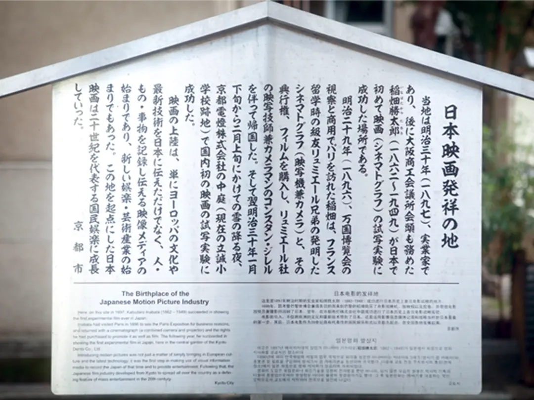 世界における映画のはじまりは、1895年、パリのグラン・カフェにて、リュミエール兄弟が発明したシネマトグラフを有料で一般公開したという話があります。※諸説あり この2年後、京都・西陣からパリへ留学していた稲畑勝太郎が、リュミエール兄弟とクラスメイトだったことから、帰国時「シネマトグラフ」を持ち帰り、「京都」の木屋町で日本初の試写をおこなったことから、「京都」は日本映画発祥の地といわれています。