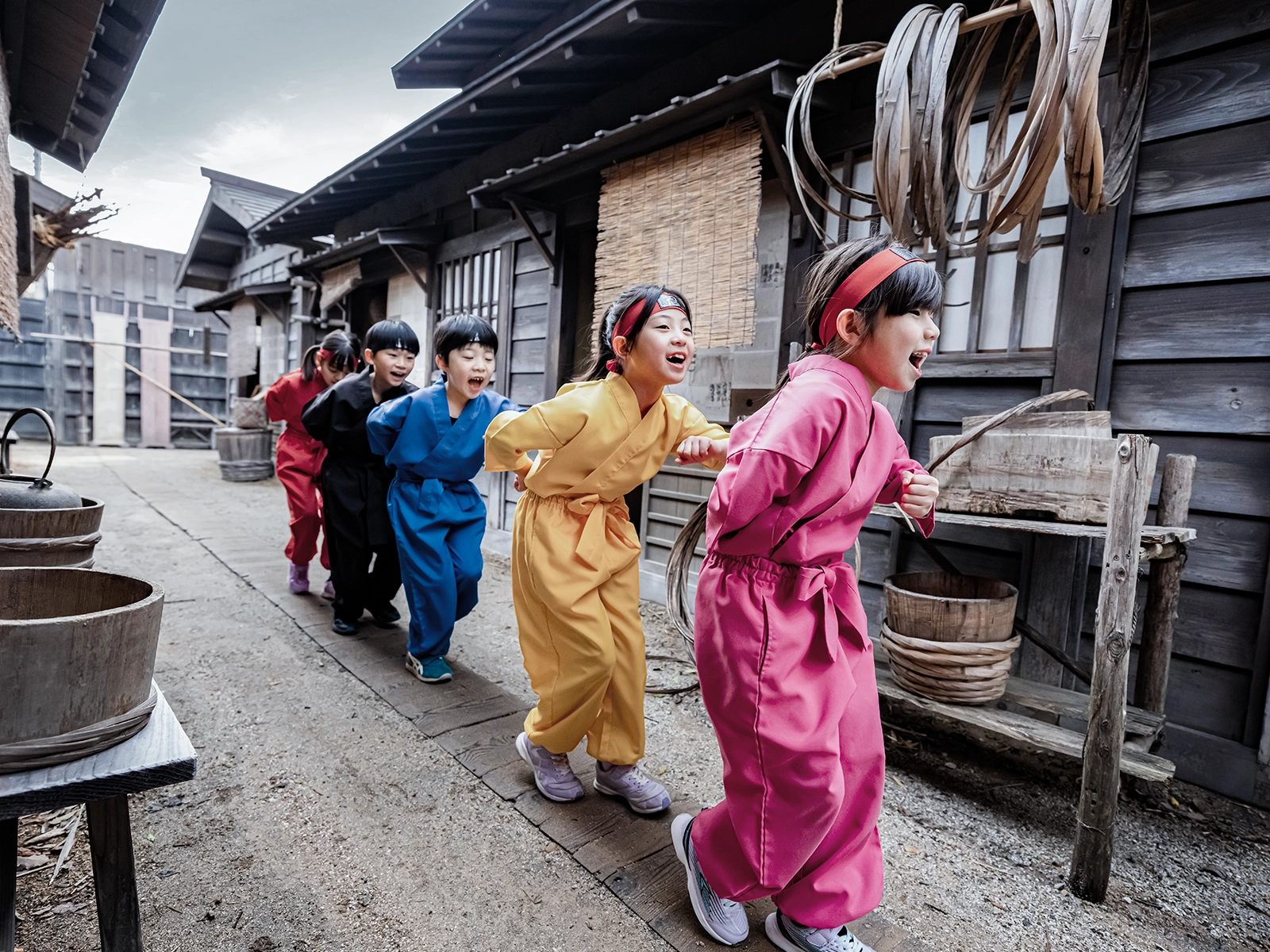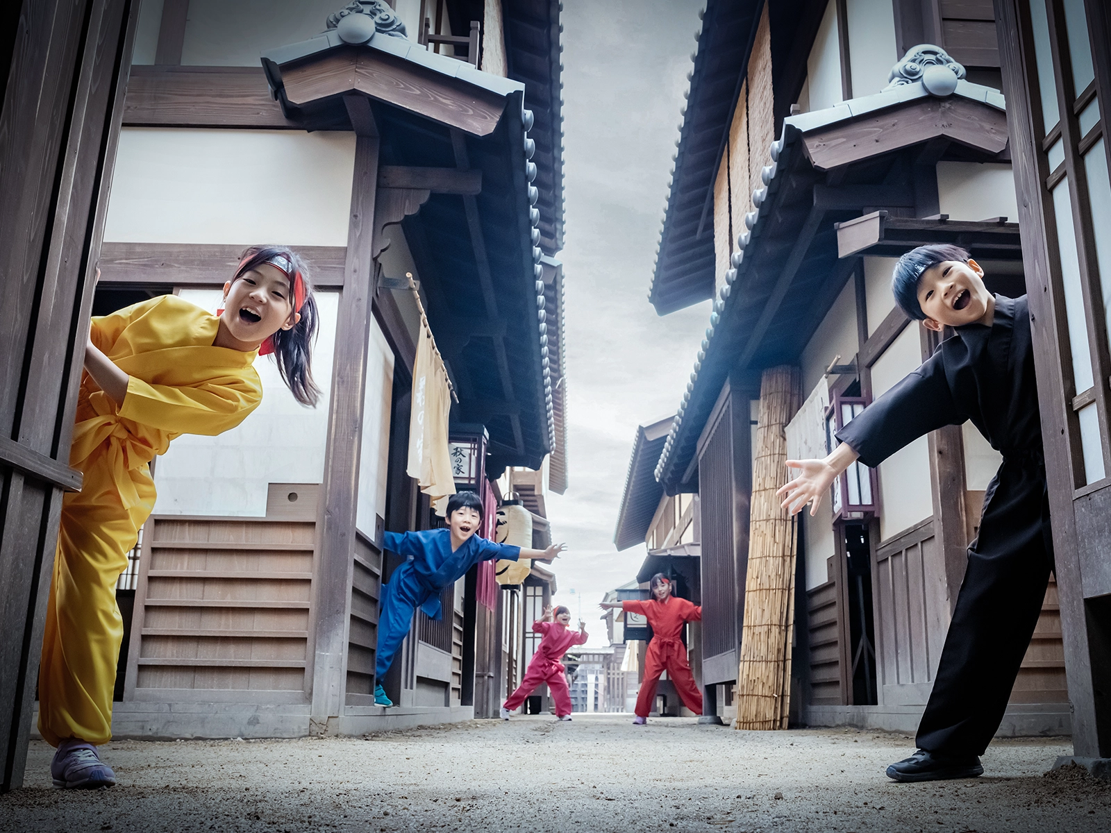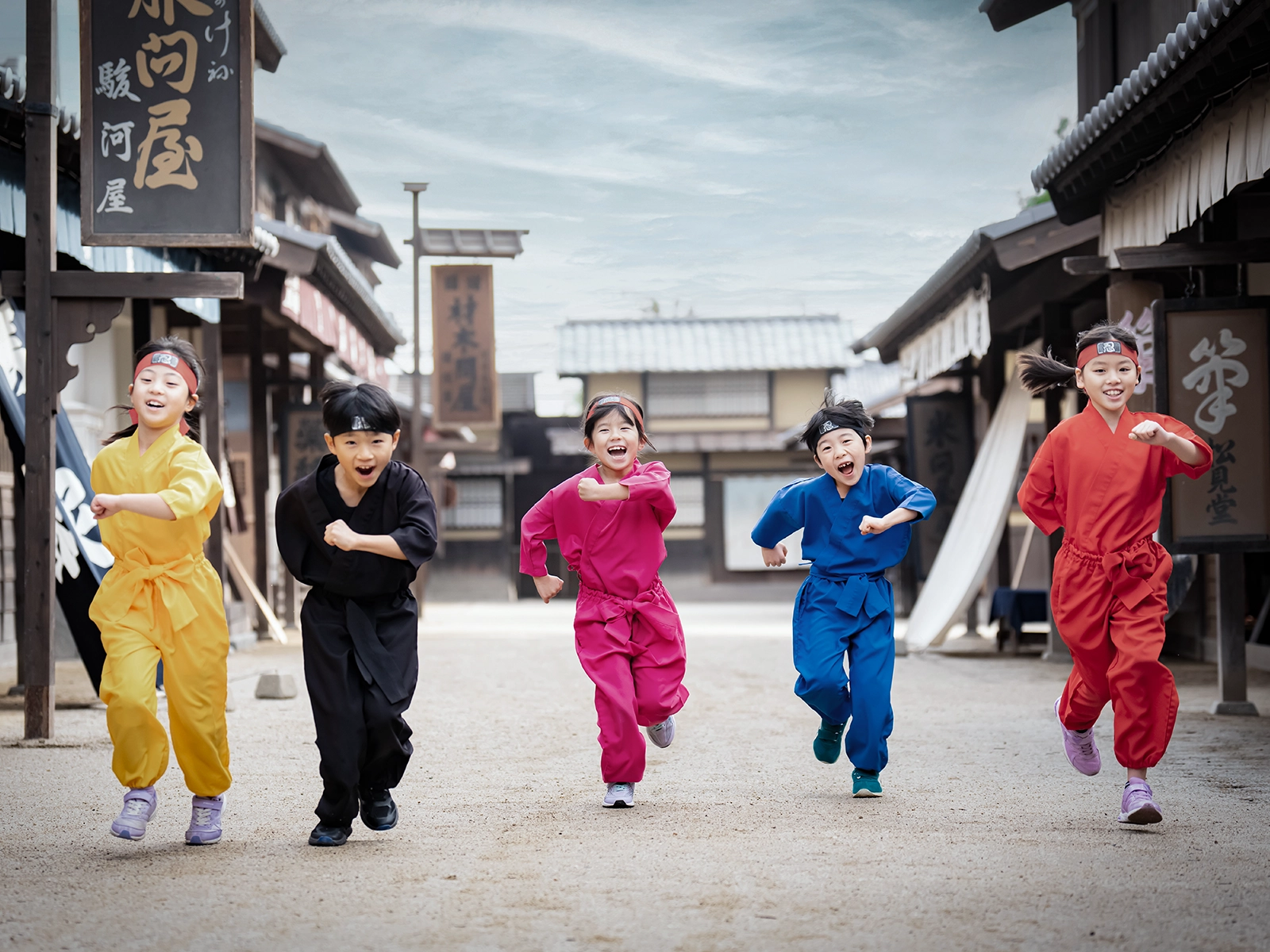 楽しめるのは大人だけじゃない、子供が楽しめる映画村オリジナル衣装で忍者になりきって「からくり忍者屋敷」などを体験したり、映画村の中を歩き回ったり、写真を撮ったり、楽しみ方は自由自在。思い出も倍増。