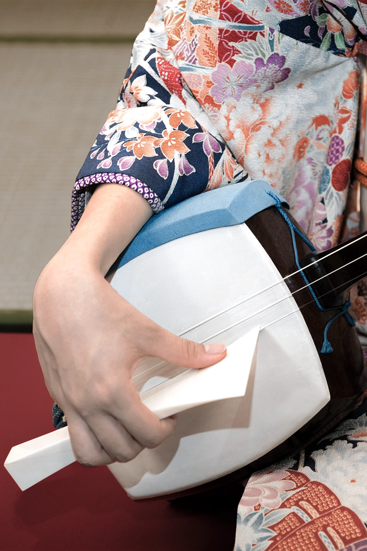 三味線は、バチで糸を打つことによって、美しい響きを生む日本の伝統楽器です。本体験では、三味線の構え方やバチの持ち方、糸の押さえ方を学んで、三味線本来の音色を味わいます。