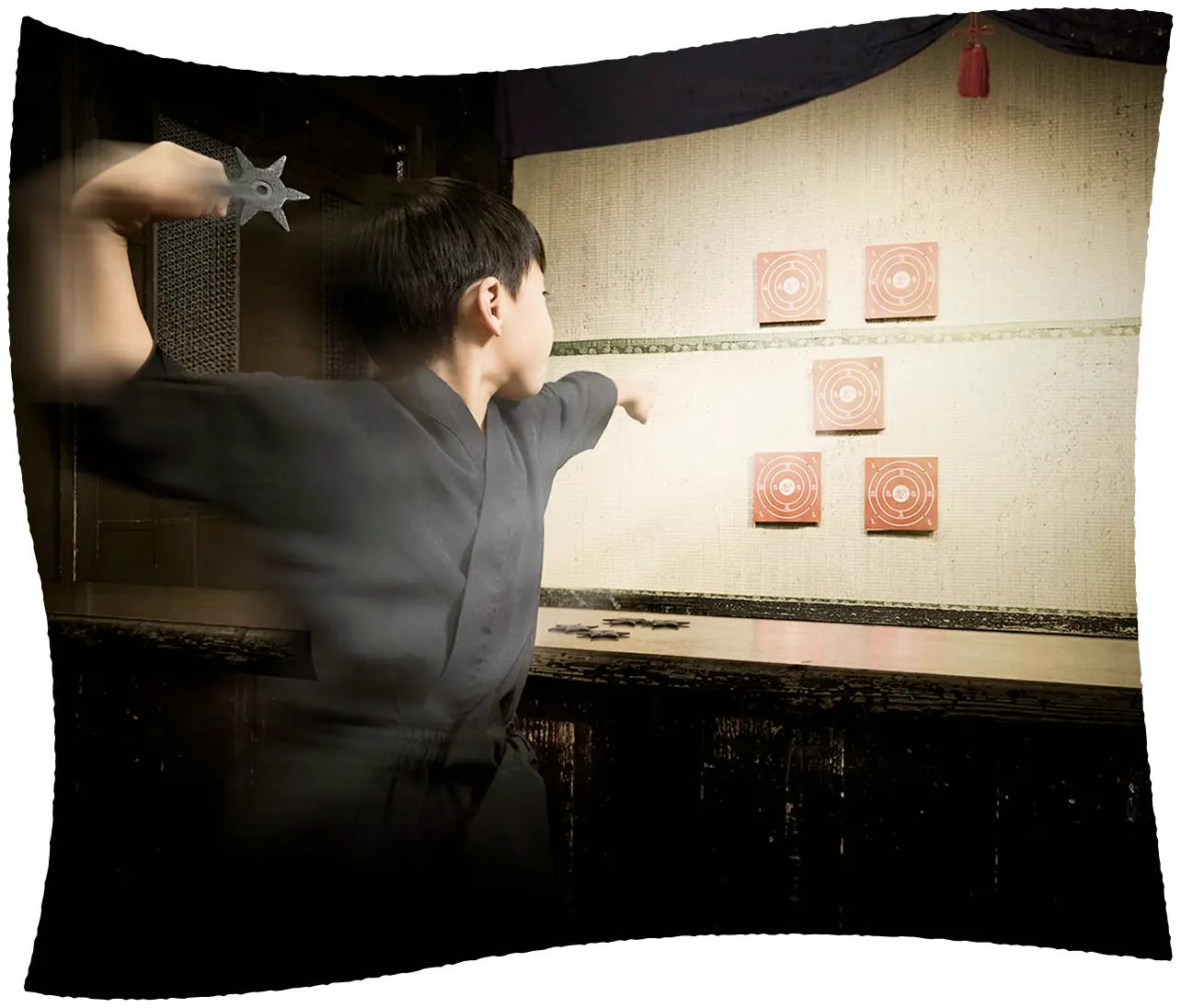 君も忍者になれる!手裏剣を投げて、的を狙う本格体験。シュッ!と風を切る音、的に当たった時の爽快感は格別!スタッフが丁寧に投げ方を教えてくれるから、初めてでも安心。パパやママも思わず夢中になること間違いなし。家族で点数を競い合おう!