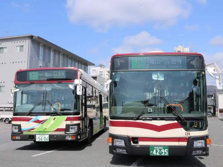 映画村へのアクセスや京都観光に便利な、京都駅、四条河原町・三条京阪、阪急嵐山駅 〜 映画村方面の均一区間内でご利用いただける京都バス2回乗車券付きのセット券になります。 公式HP:https://www.kyotobus.jp/