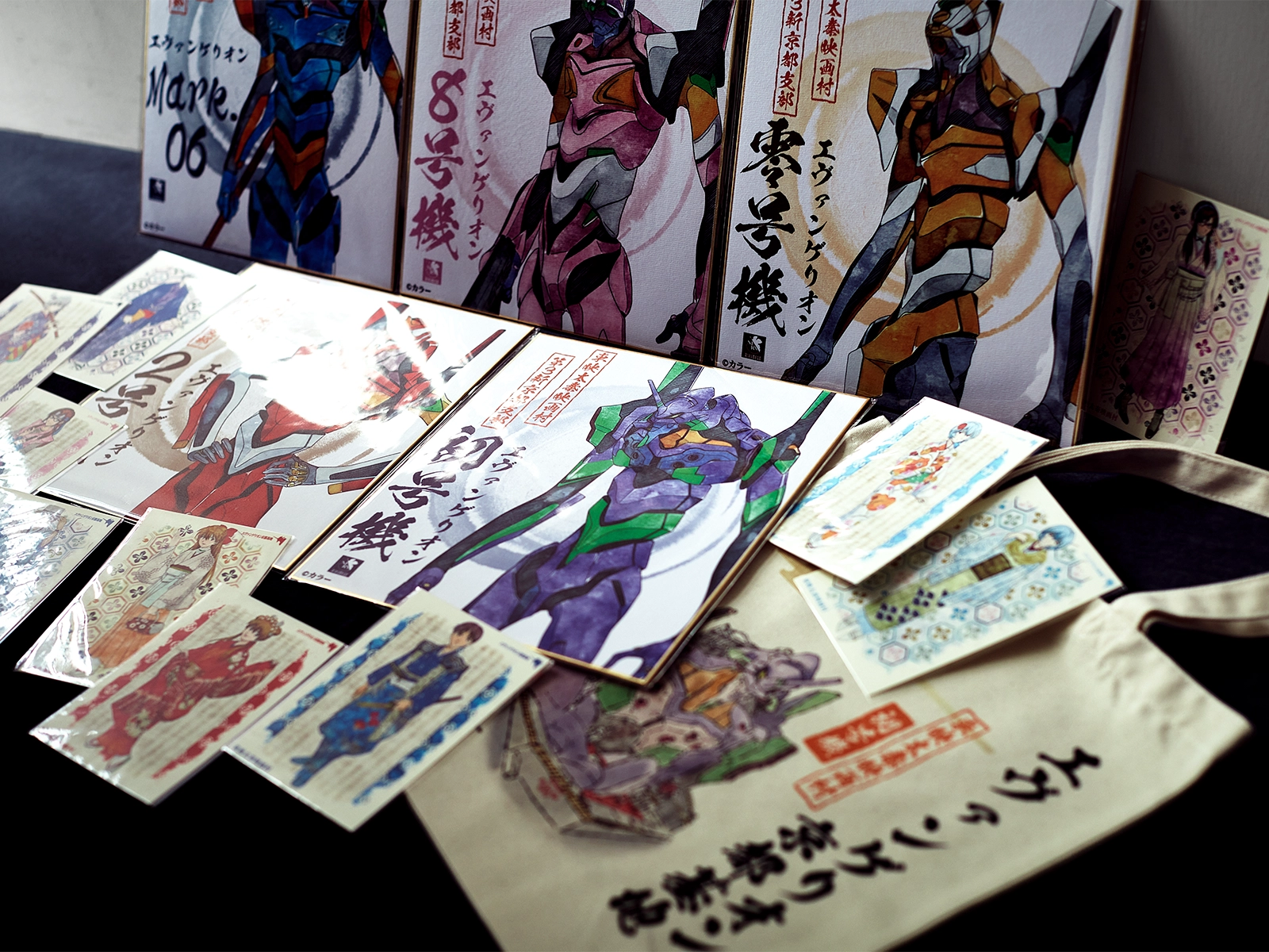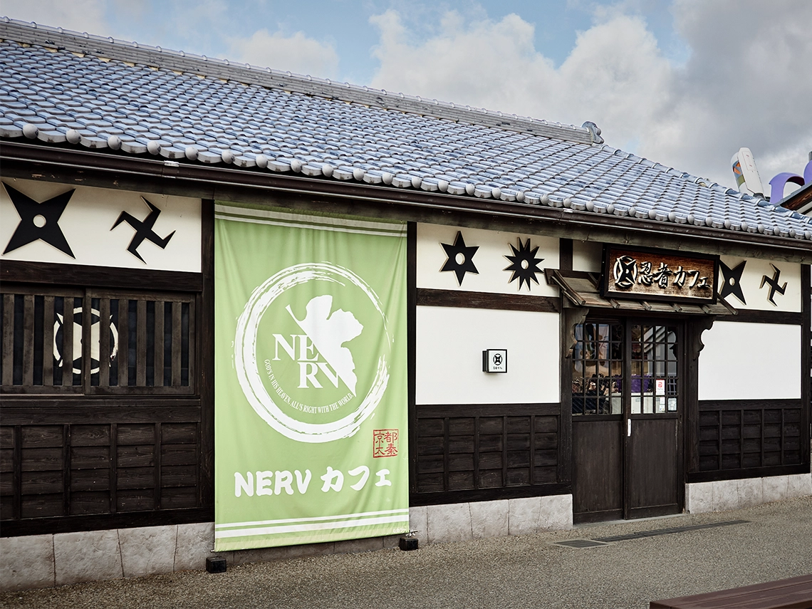 「NERVカレー」や「飲めるL.C.L.」など、大人気のコラボフードをはじめ、「千両箱ポップコーン」や「忍法!!木の葉かくれーぷ」などの忍者スイーツも充実。お食事の他に、エヴァグッズや忍者グッズのお土産コーナーも。