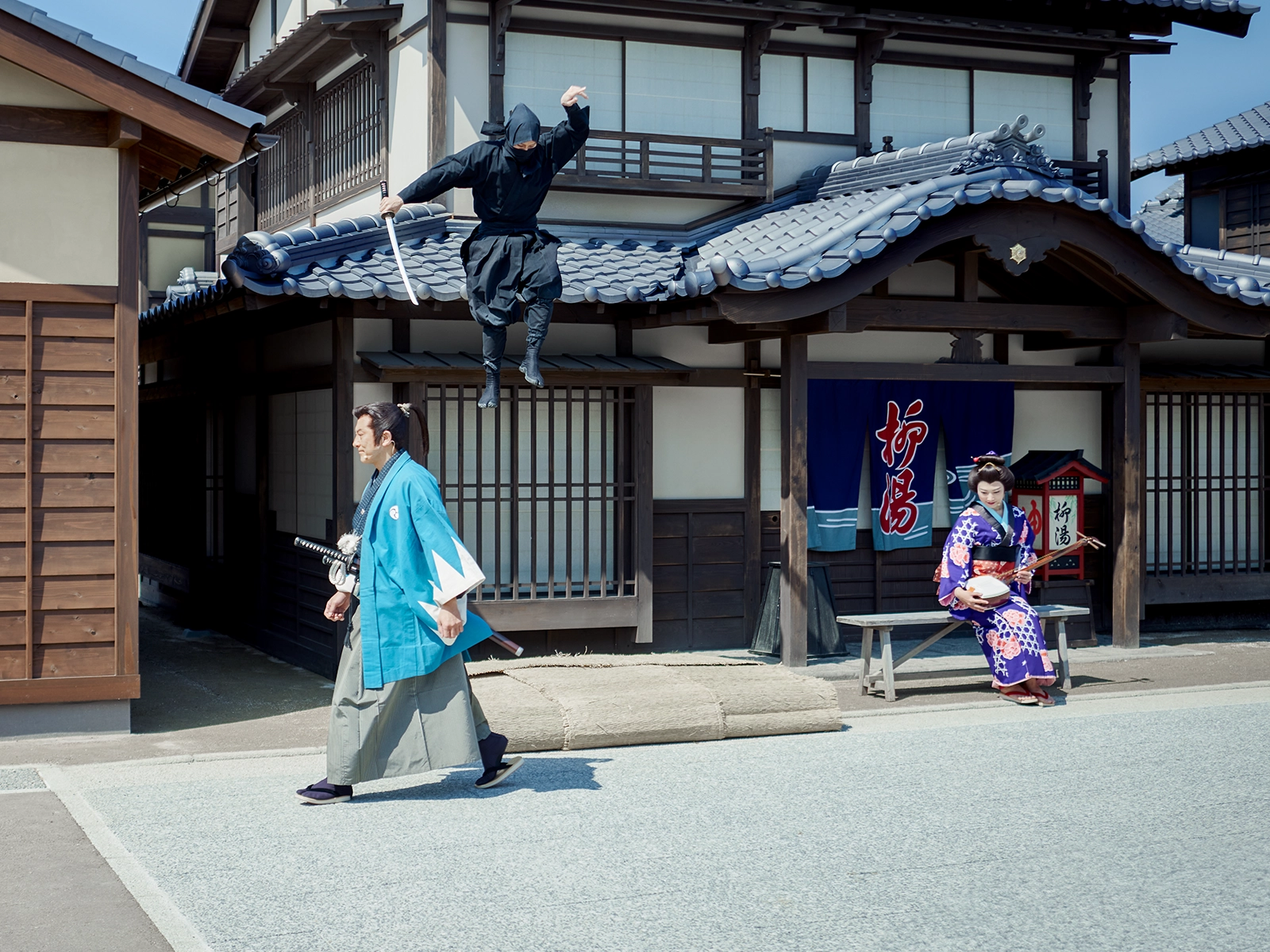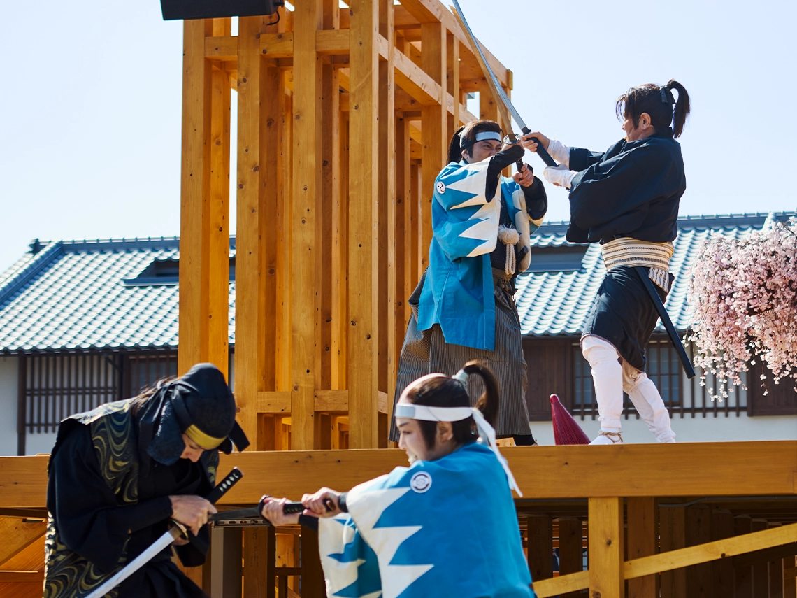 見どころは、なんと言っても太秦の俳優陣による圧巻の演技と大迫力の殺陣!さらに、オーディションで選ばれた若き気鋭の俳優たちが活気あふれる江戸の住人をリアルに熱演し、街の息遣いまで再現します。皆様も江戸の住人の一人となって、クライマックスのメインショーへと続く特別な時間をご堪能ください!
