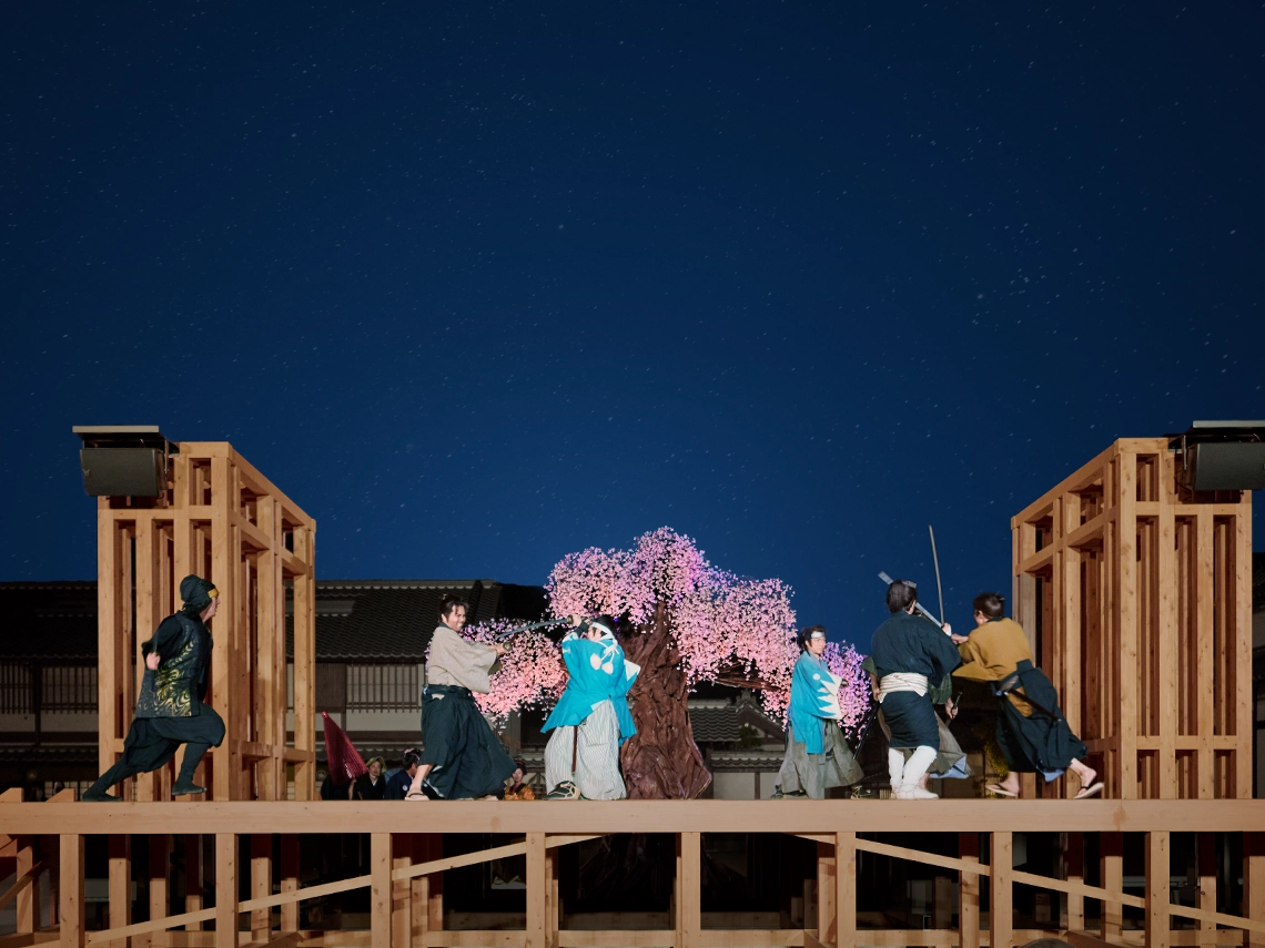 『360°リアルタイムドラマ』は、村全体を舞台にリアルタイムでドラマが展開する新たなライブショー。さまざまな人物たちが生きる江⼾時代のとある京都の⼀⽇をあなたは⾃由に過ごしながら、時に事件が巻き起こる⼤きな物語を共に体験する。春の演⽬は『花嫁道中 桜の宴』。思わず現代を忘れる圧倒的な没⼊体験。