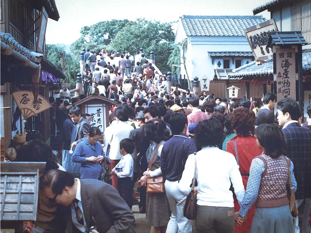 黄金期を迎えた国際映画都市「京都」も、テレビの隆盛により「映画製作」が激減。海外で華々しい功績を残した「大映京都撮影所」が倒産し、日本最大級の広さと世界一の映画製作数を誇った「東映京都撮影所」も、閉鎖のピンチを迎えます。そんな中、「日本映画の灯を絶やすな!」をスローガンに、新たな活路として撮影所の屋外スタジオを一般公開。撮影をライブ見学できる日本初のテーマパークとして誕生したのが「東映太秦映画村」です。映画村の大ヒットにより、大作映画の製作が再び復興。国際的スター誕生の契機ともなり、これまで映画製作累計本数2,000本以上、テレビドラマ9,000話数以上の作品を輩出し、現在は海外配信の時代を迎え、世界中から今、「時代劇」へふたたび熱い視線が注がれています。