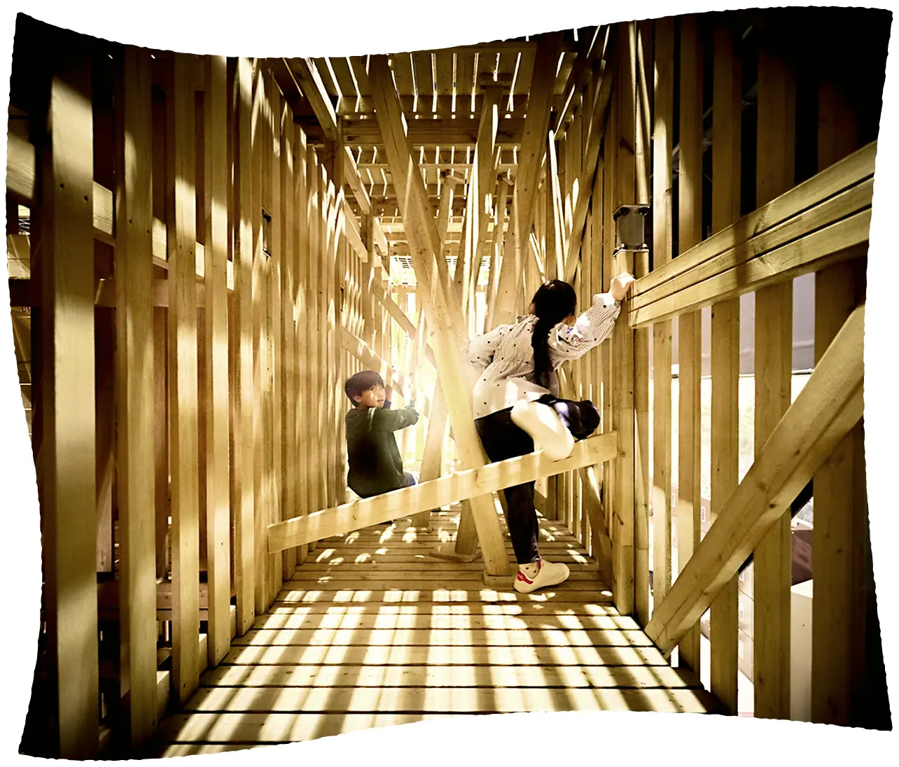 登って、くぐって、滑り降りて!全身を使って挑戦する巨大な立体迷路は、まさに忍者修行そのもの。体力コースと知力コース、君はどちらに挑む?ゴールした時の達成感は格別だ!