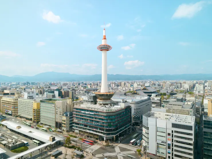 京都に降り立ち見上げると、一際目立つ白と赤のフォルム。京都のランドマーク 「ニデック京都タワー」は、海のない京都の街に立つ灯台的存在。鉄骨を一切使わずに建築された独特な構造です。全長131mのタワーには展望室があり、京都の街を一望できます。ぜひ、清水寺や東寺などの文化財を、地上100mから鑑賞してみてください。