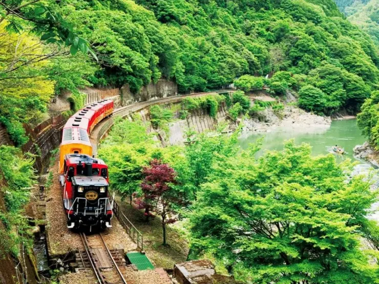 嵯峨野トロッコ列車:片道約7.3キロおよそ25分の列車旅。春は桜、夏は新緑、秋は紅葉と四季折々の景色はもちろん、国の登録有形文化財に登録された橋梁やトンネルなど、歴史ある鉄道風景も見どころのひとつです。 公式HP:https://www.sagano-kanko.co.jp/