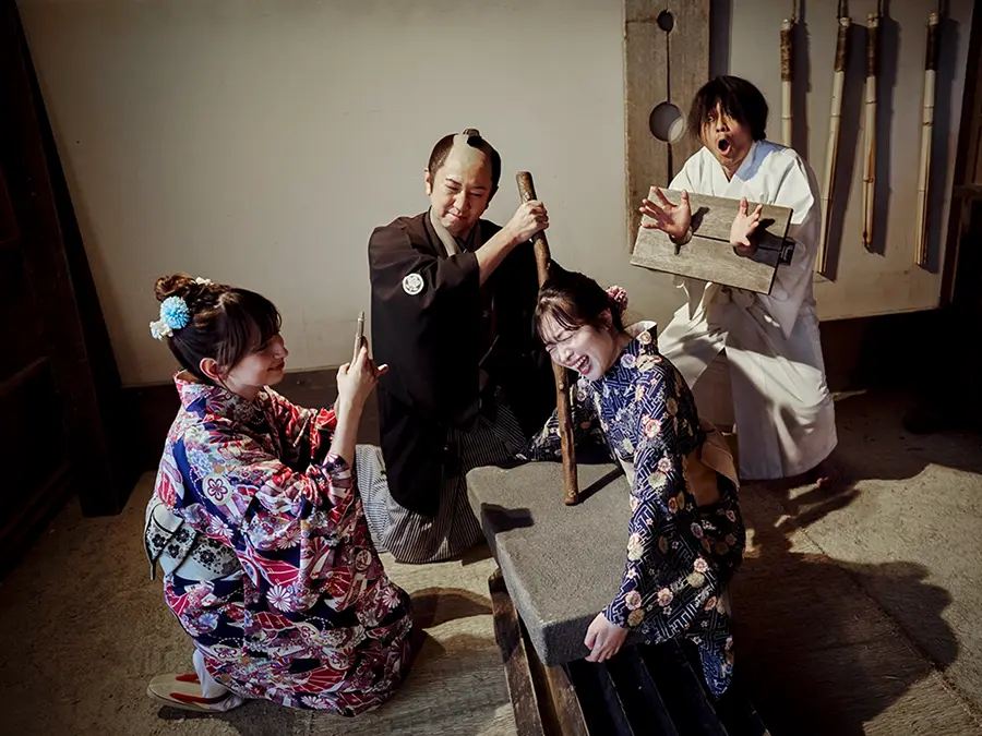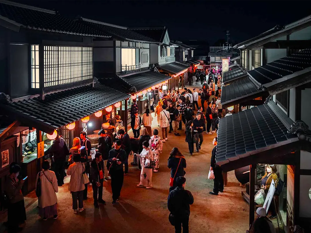太陽が沈んで、提灯が灯れば、大人だけが楽しめる粋な夜の始まり。名店の味に舌鼓を打ち、美酒に酔う。飛び交う丁半博打の声に、恐ろしい拷問の悲鳴。いつもと違う映画村の顔を、とくとご覧あれ。